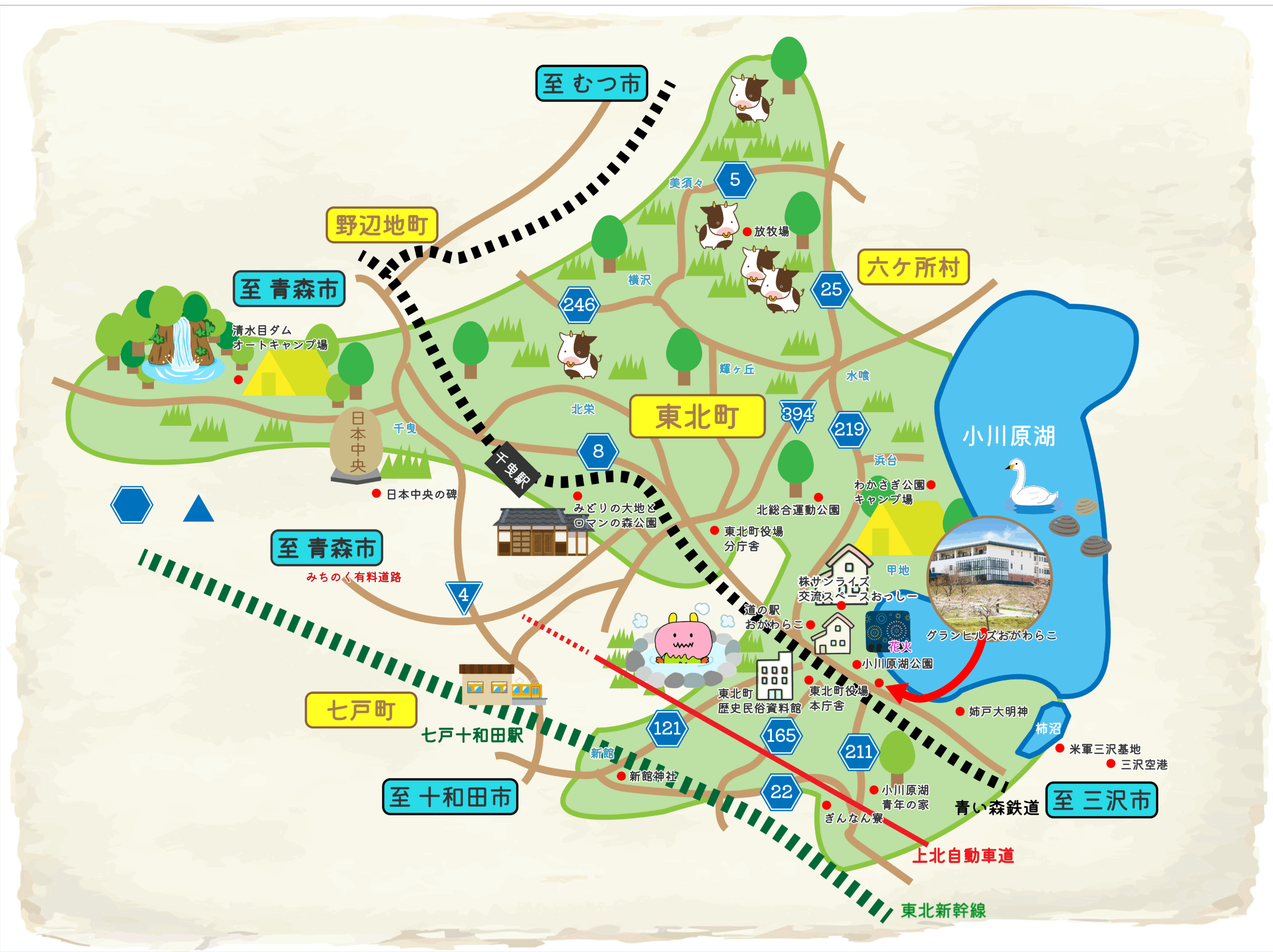 青森県東北町グランヒルズおがわらこ周辺マップ